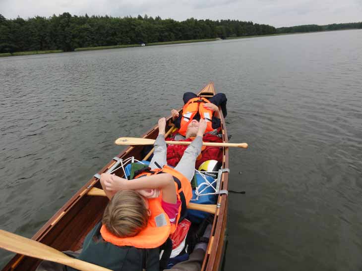 Seeadler (Felix), Schwimmen im See (alle), schneller als die anderen paddeln (Felix und Katharina), im Kanu eine ruhige Kugel schieben (Michael), in der Abendsonne vorm Zelt ’ne Limo (Katharina und Felix) oder ein Bierchen
