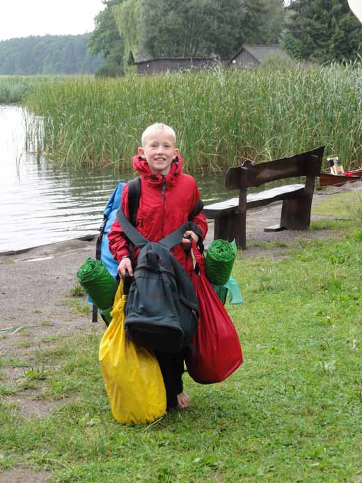 Michael die Kinder an und versucht’s dann, weil das nicht so recht fruchten mag, mit Bestechung: „Am anderen Ende des Sees ist schon der nächste Zeltplatz. Da gehen wir in die Kneipe und bestellen uns Currywurst mit Fritten und