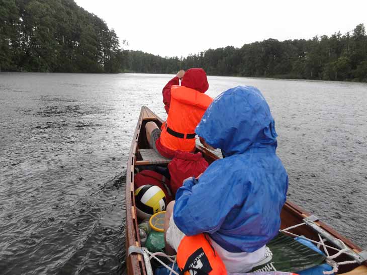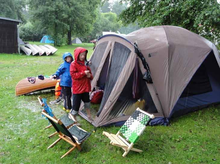 (Michael) trinken. Stattdessen treiben sie nun im Kanu auf dem Ellbogensee durch den Regen, und auf dem letzten Zeltplatz gab’s statt Bierchen vorm Zelt nur Regen aufs Dach.„Da müssen wir jetzt wohl durch“, spornt