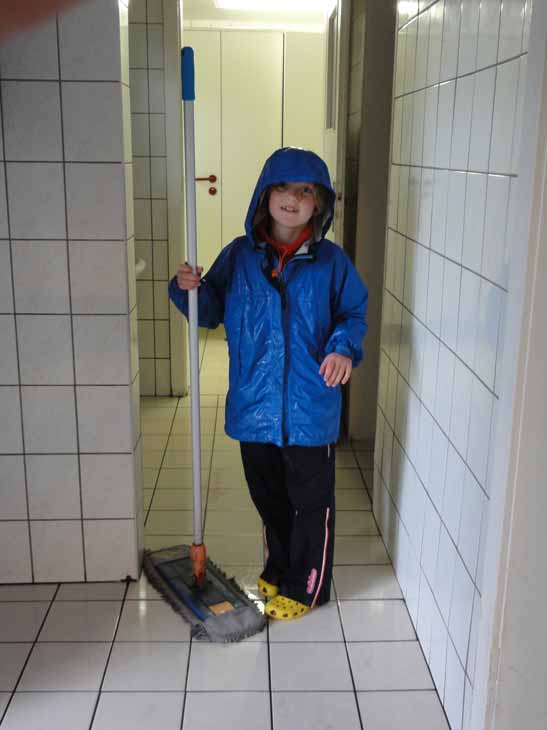 Gesichtsausdruck bemerkt, hat sich entschieden: „Da musst du wohl jetzt durch. Wir haben doch unser Zelt nicht umsonst im Regen aufgebaut.“ Also bleiben. Und wieso auch nicht, die Cafeteria ist beheizt und wasserdicht, und im