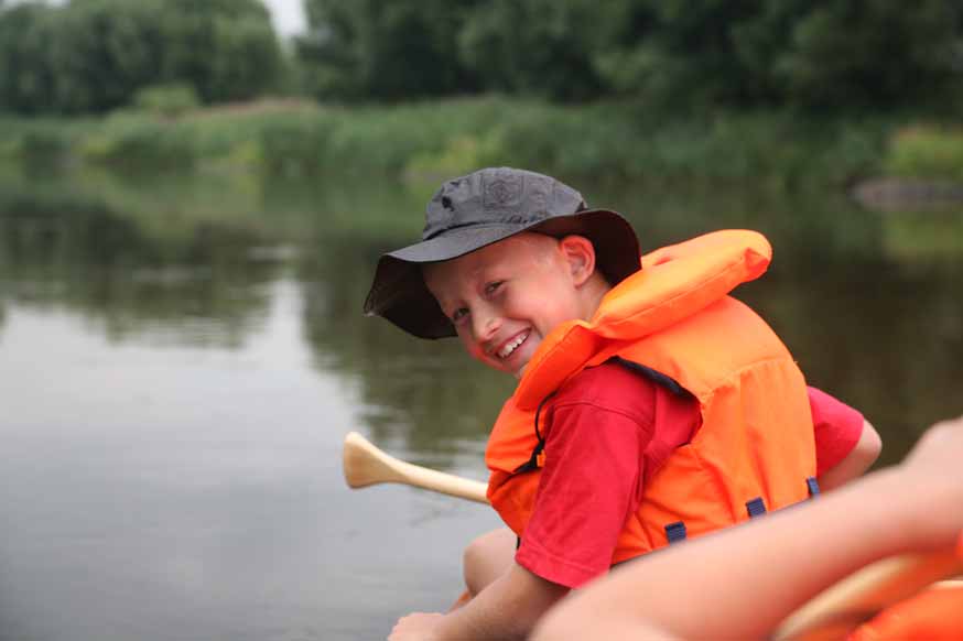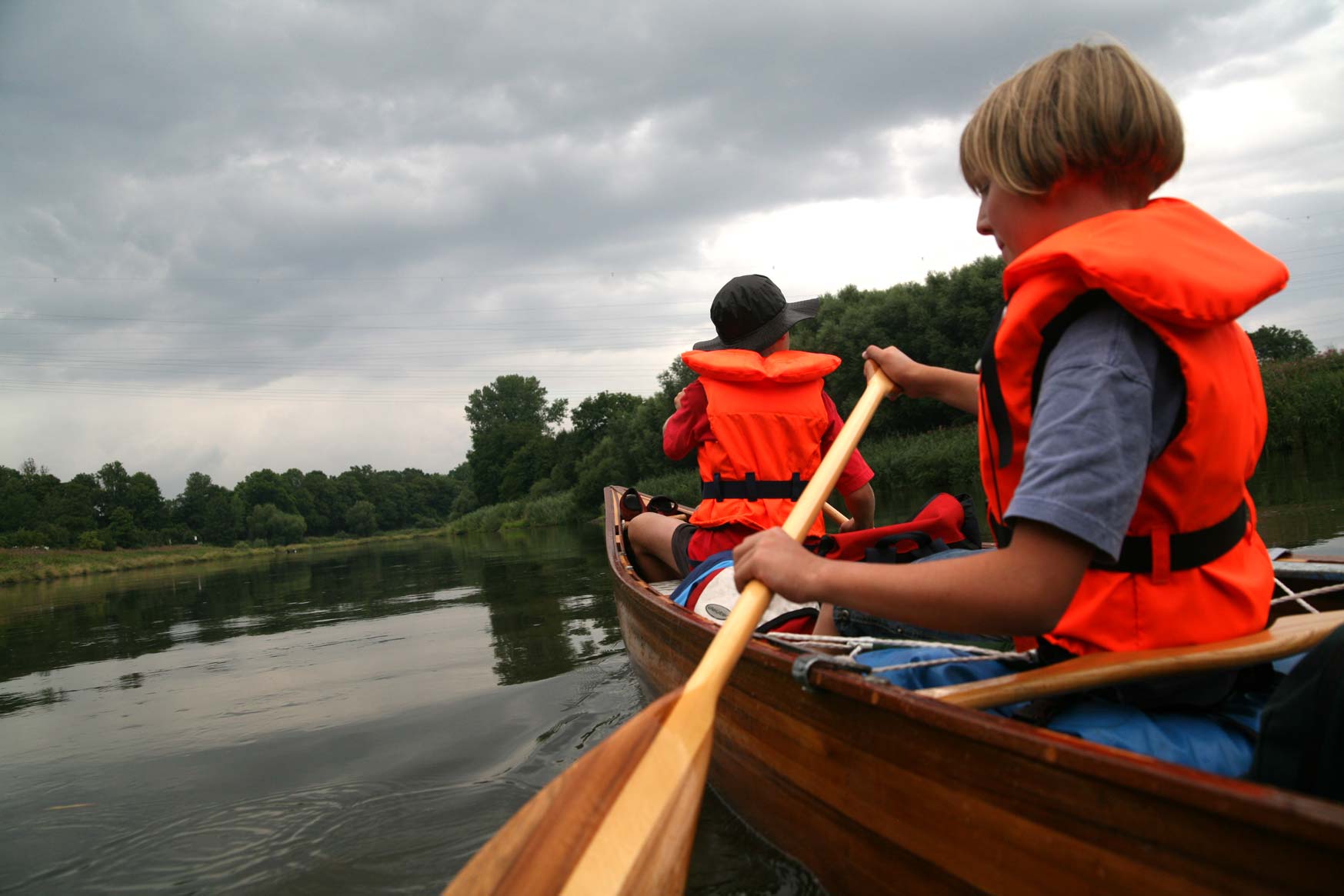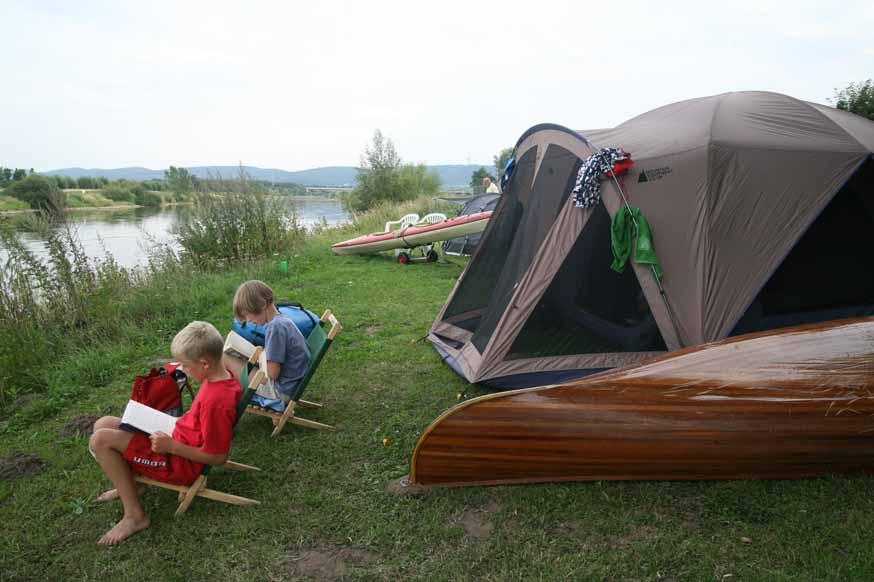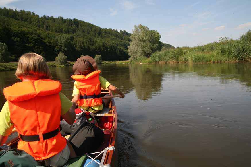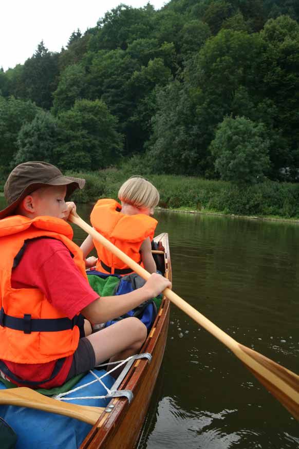 „Nee, Papa“, sagt Felix, „wir wollen hier noch nicht zelten. Kanu fahren ist Sport, und wir wollen noch paddeln. Wo wäre denn der nächste Zeltplatz?“
