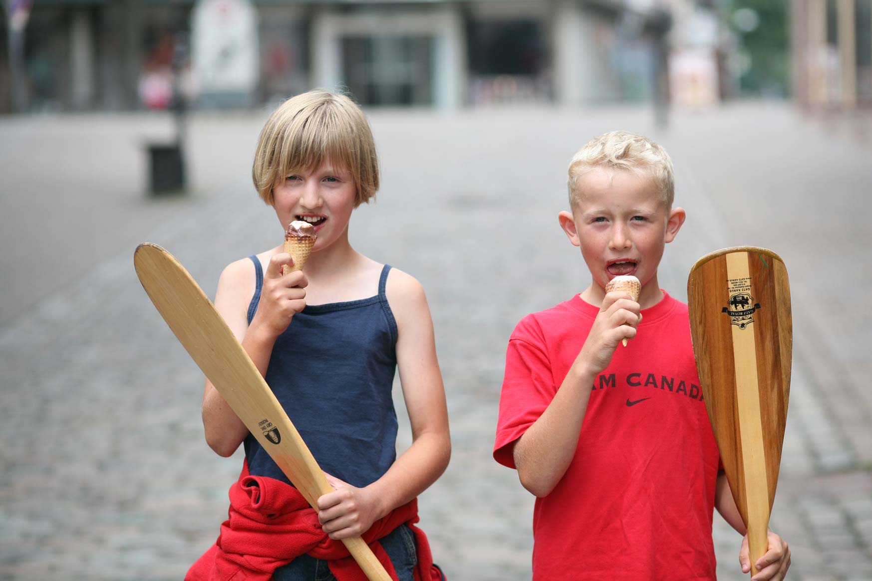Nach einem Stadtbummel durch das malerische Hugenottenstädtchen paddeln Franziska, Felix und Michael am nächsten Morgen los. Gegen Mittag nähern sie sich Höxter. Die Zeltnachbarn von Bad Karlshafen kamen aus Höxter und hatten die Altstadt mit ihren Fachwerkhäusern der Weserrenaissance und die gleich hinter dem Rathaus liegende beste Eisdiele der Stadt empfohlen. Felix und Franziska, die da ganz genau zugehört haben, erklären ihrem erstaunten Vater, dass sie nach so viel Paddelei doch zu gerne in Höxter Pause machen und Fachwerkhäuser gucken möchten. Das Kanu wird unter der Weserbrücke an Land gezogen, die Kinder nehmen ihre Paddel mit – es soll keiner mit Boot und Ladung wegpaddeln können –, fragen sich zum Rathaus durch und – hoppla! – ist da nicht die Eisdiele, die uns am letzten Zeltplatz empfohlen wurde? Davon müssen die beiden sich natürlich selbst ein Bild machen, wer verlässt sich schon gerne kritiklos auf anderer Leute Empfehlungen. Schokolade, Vanille und Stracciatella lautet die Auswahl für den Gourmettest, und … Felix und Franziska empfehlen die Eisdiele gerne weiter.