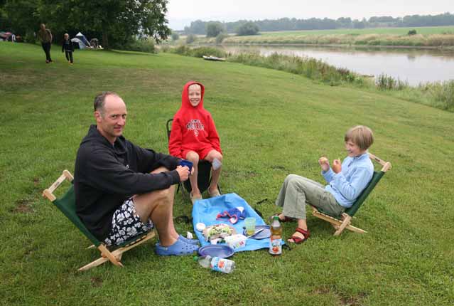Nicht weit danach kommt der Zeltplatz Gieselwerder. Michael freut sich schon.