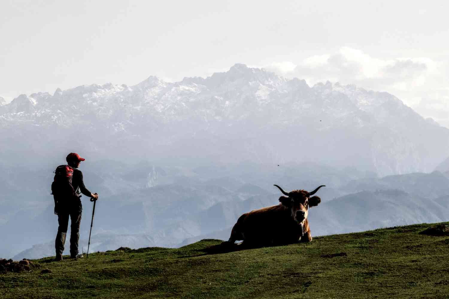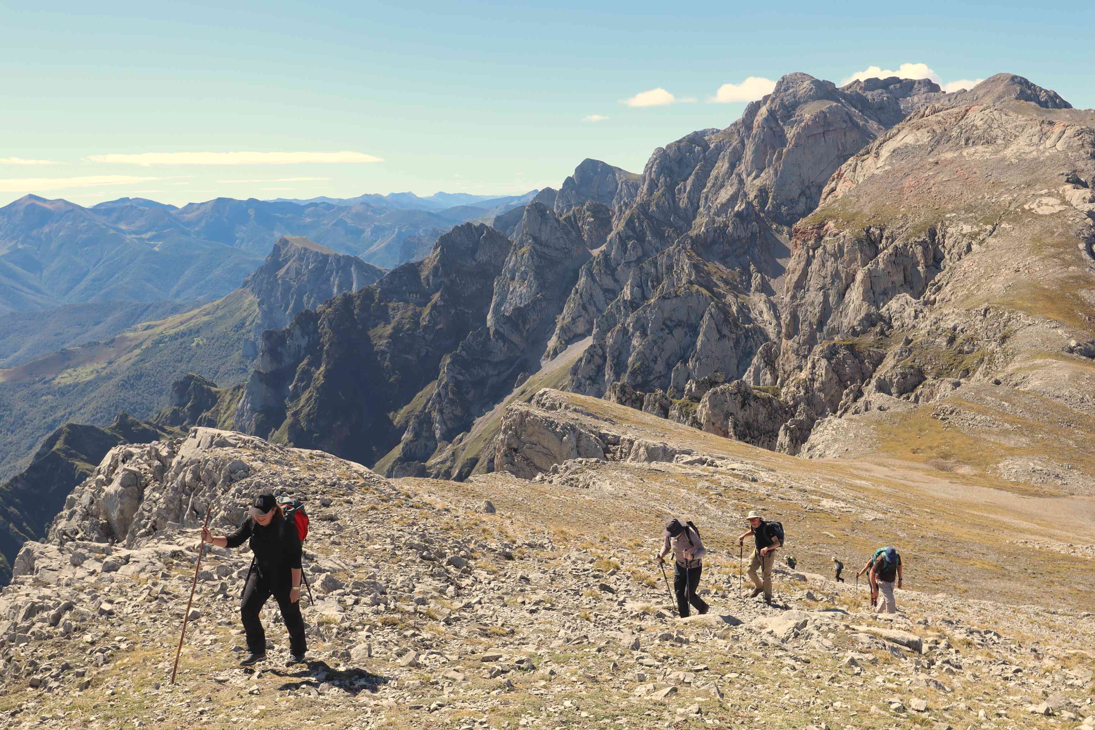 anderthalb Stunden Wanderung auf den Pico Bustiellu, dort Gipfelpause mit allem, was so ein Hochgebirge zu bieten hat, und dazu zählen im Kantabrischen Gebirge außer tollen Ausblicken insbesondere auch die zahlreichen Gänsegeier,