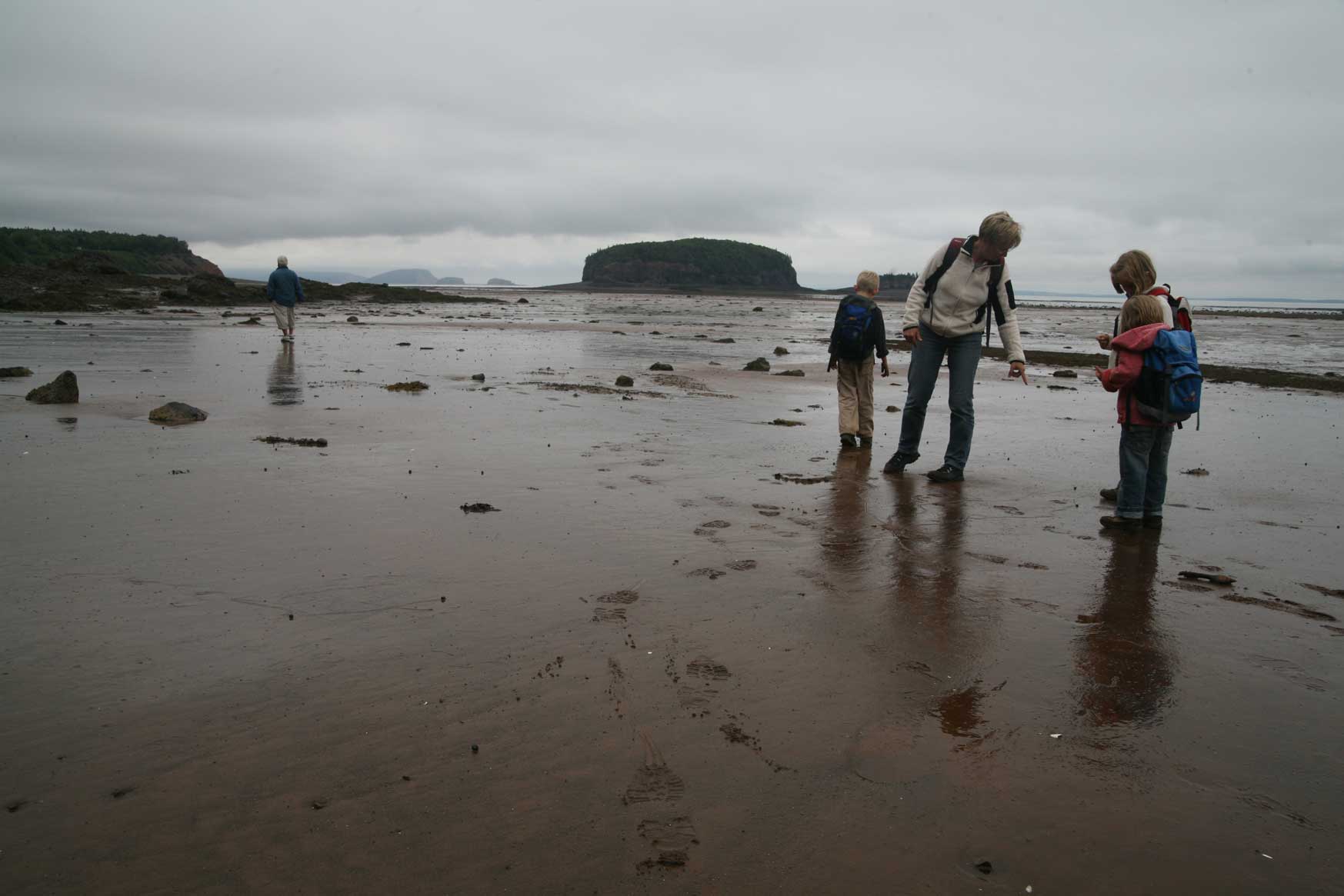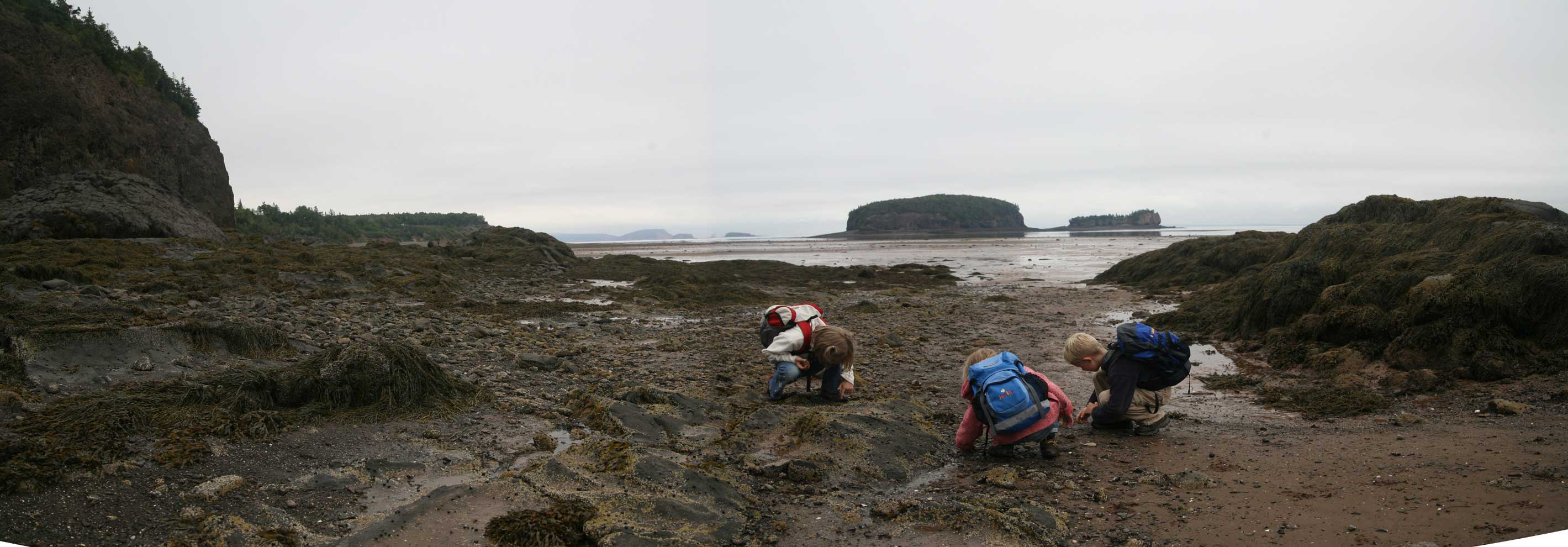 Der Sache mit der Bay of Fundy und ihrer Überquerung bei Ebbe gehen wir bei Two Islands auf den Grund. Da kann man bei Ebbe richtig schön auf dem Meeresgrund spazieren gehen, es gibt ja auch nirgendwo sonst auf der Erde einen derart hohen Tidenhub. Aber die ganze Bucht bei Ebbe überqueren? “Besser, man kann schwimmen” meint Felix, und wir pflichten ihm bei. |