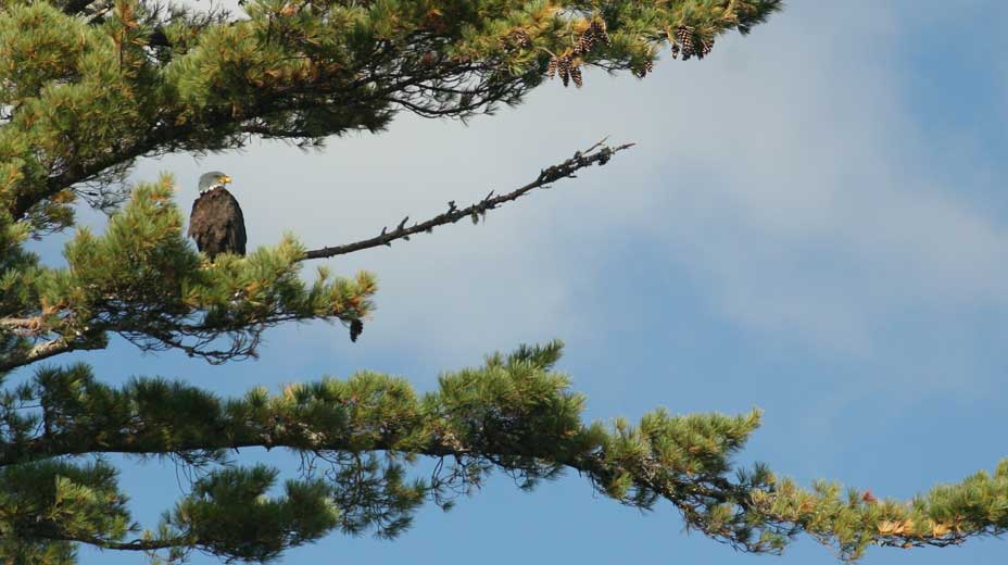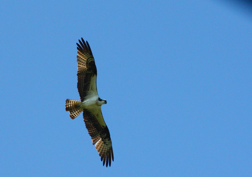 Damit wäre ja eine Menge geklärt. Eine Frage aber bleibt, die mit den sieben Fisch- und vier Seeadlern. Und wir müssen gestehen, wir wissen es noch immer nicht. Dabei begleiten uns beide Arten überaus regelmäßig. Weißkopfseeadler sieht man auf Cape Breton Island täglich, und Fischadler konnten wir zu Hause in Halifax immer wieder beobachten. Aber sieben gegen vier? Das müssen wir noch rauskriegen. |
