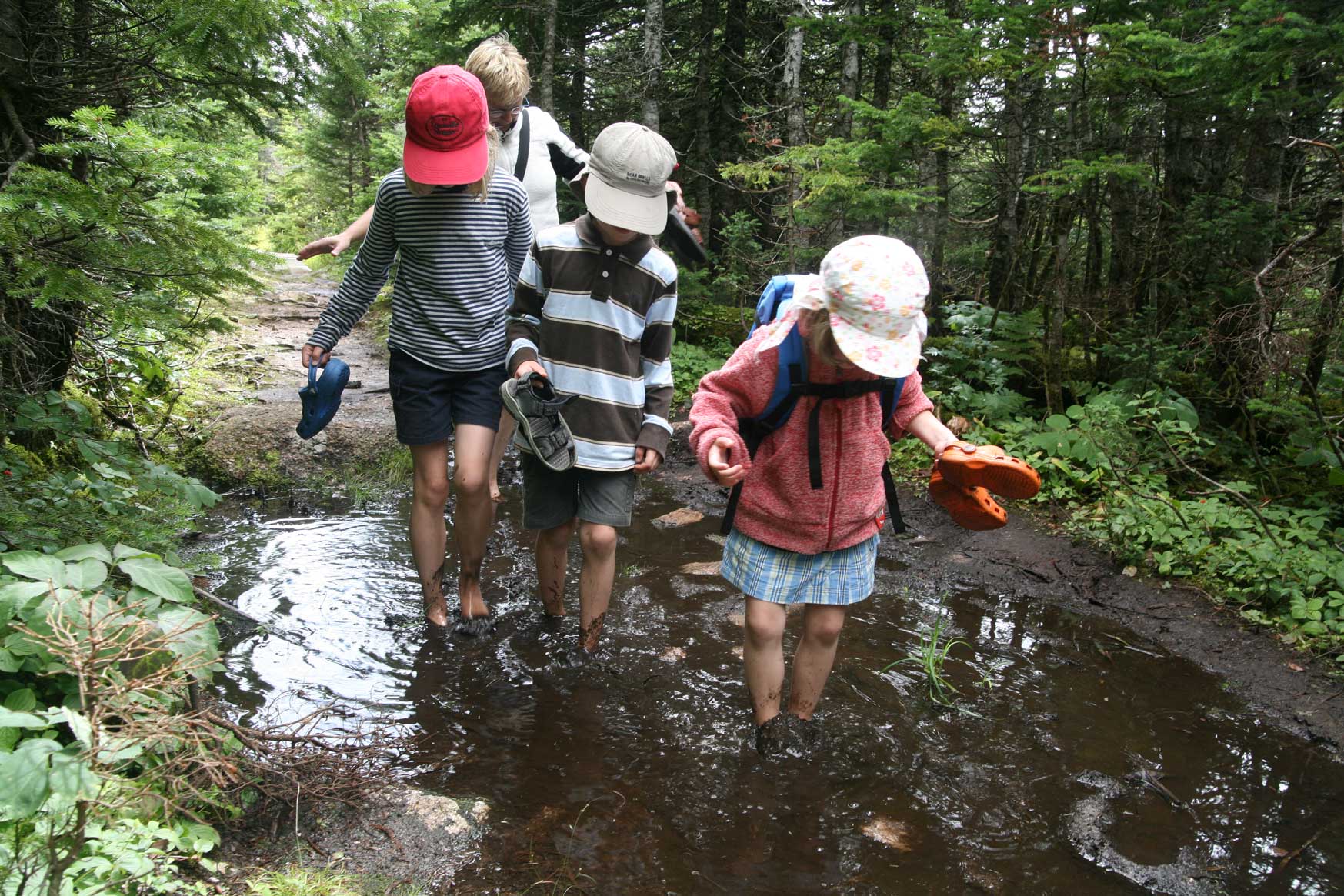 Wanderweg in die Wildnis geschlagen. So erleben wir den Nationalpark auf zutiefst nordamerikanische Art: Mit dem Auto anfahren, in Sandalen wandern - macht besonders bei Matschpfützen Spaß - eine durch und durch spektakuläre