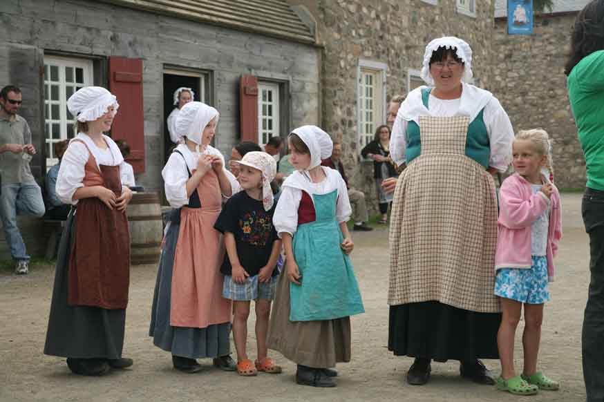Am wildesten, sagt man, sei Nova Scotia auf Cape Breton Island. In Louisbourg besichtigen wir erstmal das Freilichtmuseum Forteresse de Louisbourg und tauchen für einen Tag in die Welt der französischen Siedler des 18. Jahrhunderts ein. Diese wurden vor 250 Jahren von aus Halifax kommenden Engländern geschlagen und vertrieben, aber uns lassen die Wachen trotzdem rein. Insbesondere Katharina gibt auch ein prima Franzosenkind ab. |
