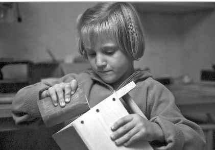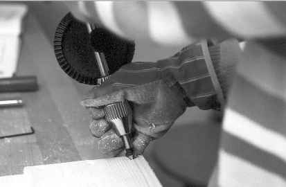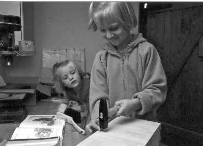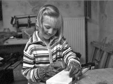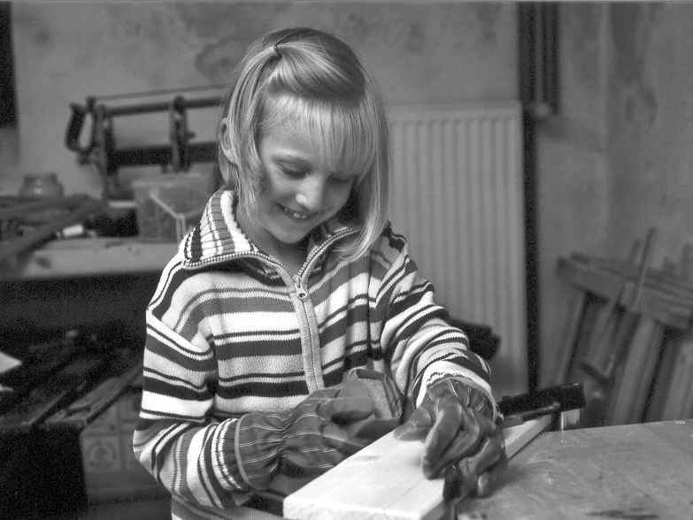 Zum guten Schluss glättet Franziska noch mal alles mit Schleifklotz und Schmirgelpapier, und dann .....